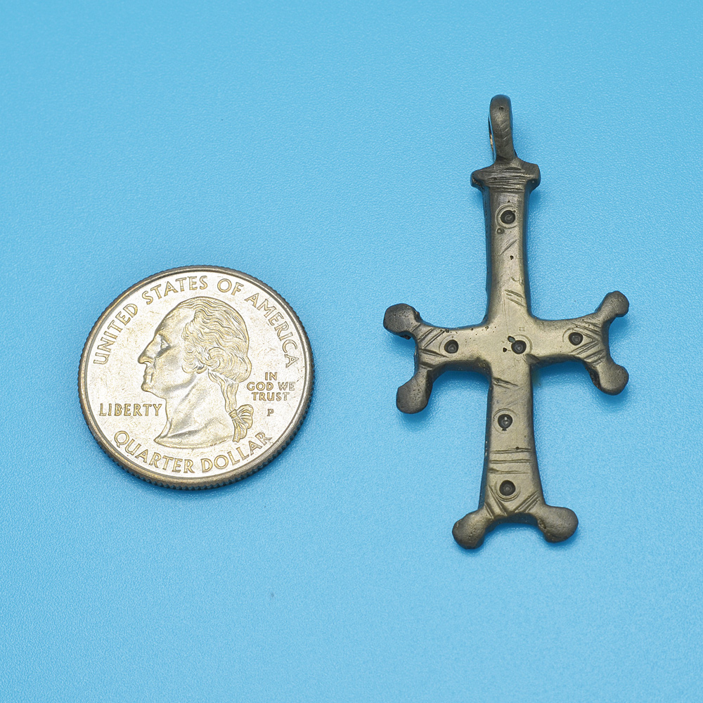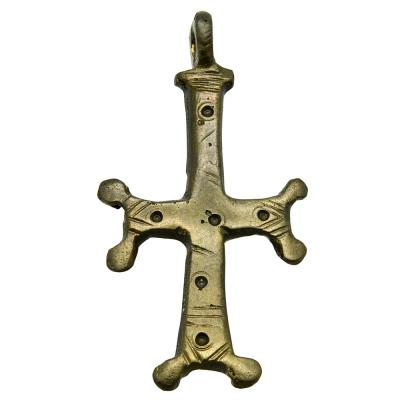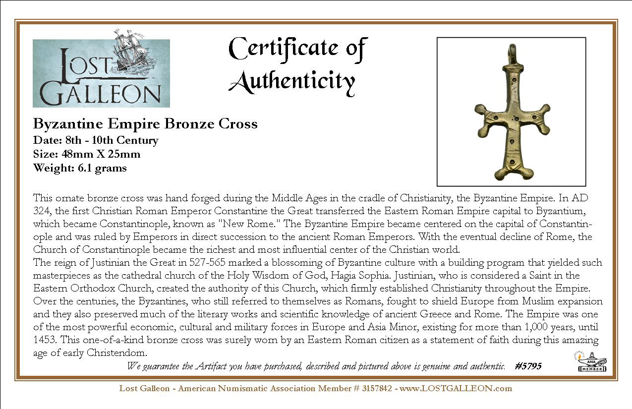 Over the centuries, the Byzantines, who still referred to themselves as Romans, fought to shield Europe from Muslim expansion and they also preserved much of the literary works and scientific knowledge of ancient Greece and Rome. The Empire was one of the most powerful economic, cultural and military forces in Europe and Asia Minor, existing for more than 1,000 years, until 1453. This one-of-a-kind bronze cross was surely worn by an Eastern Roman citizen as a statement of faith during this amazing age of early Christendom.