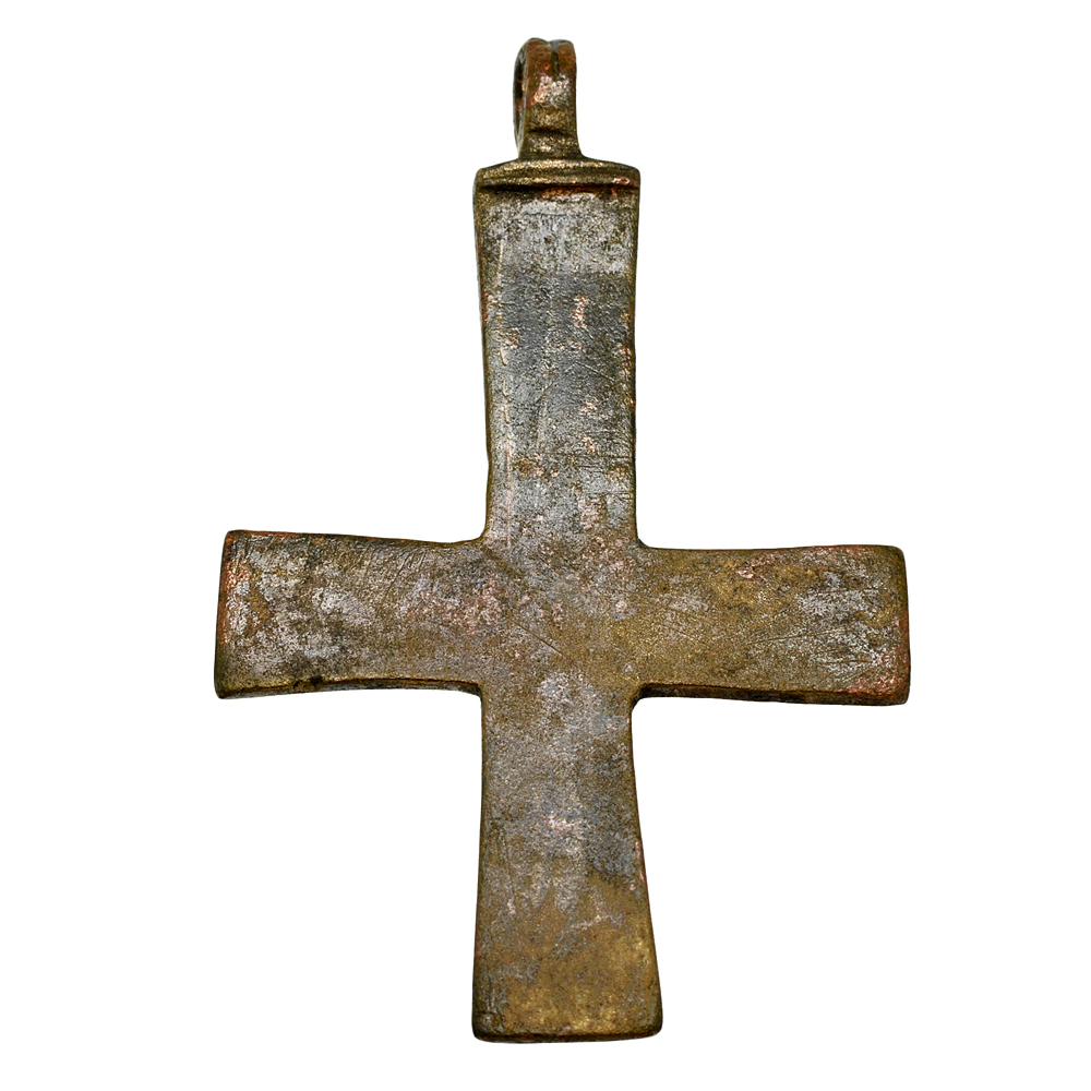 Over the centuries, the Byzantines, who still referred to themselves as Romans, fought to shield Europe from Muslim expansion and they also preserved much of the literary works and scientific knowledge of ancient Greece and Rome. The Empire was one of the most powerful economic, cultural and military forces in Europe and Asia Minor, existing for more than 1,000 years, until 1453. This one-of-a-kind bronze cross was surely worn by an Eastern Roman citizen as a statement of faith during this amazing age of early Christendom.