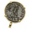 This ancient coin, featuring Constantine, was minted in the historic city of Thessalonica, which is located in present-day Greece. The reverse side depicts Jupiter, the king of the pagan Roman gods, standing with a scepter, while holding Victoria, the goddess of victory. An eagle, holding a wreath is shown at Jupiter's feet.