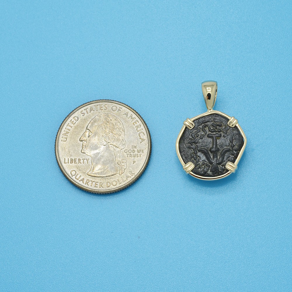 • Bronze Prutah Coin in 14k Gold Pendant, Weight 4.2g
