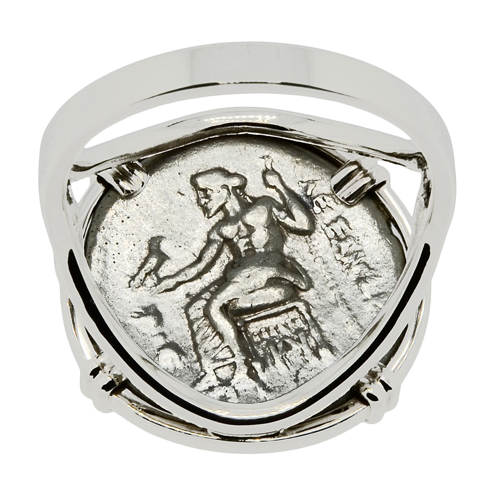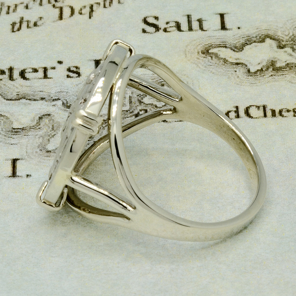 • Silver Drachm Coin in 14k White Gold Ladies Ring, Weight: 8.1g