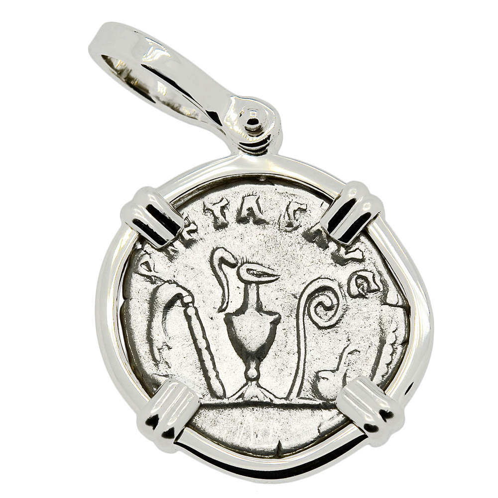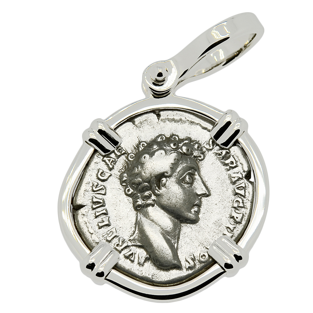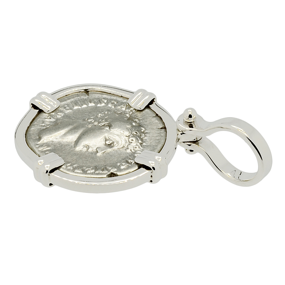 • Silver Denarius Coin in 14k White Gold Pendant, Weight 6.7g