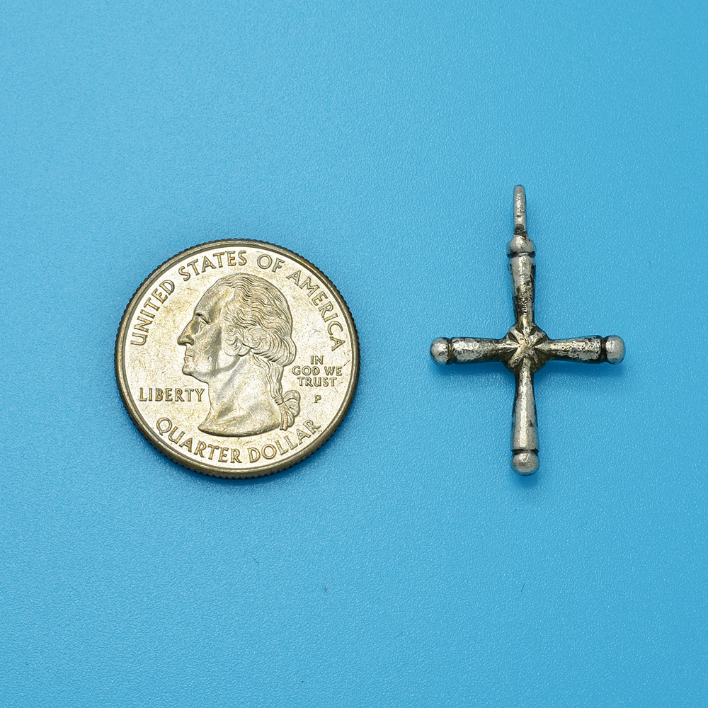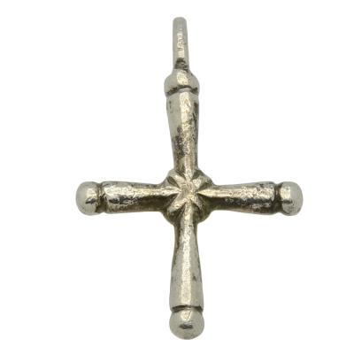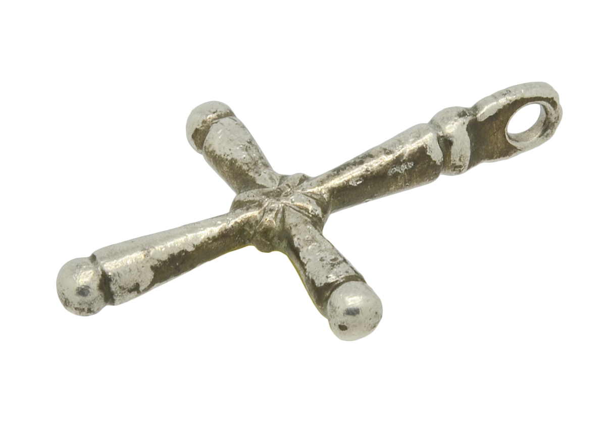 This silver cross was hand forged during the early Middle Ages in the cradle of Christianity, the Byzantine Empire. Silver crosses were much less common than bronze crosses during this time period, so they were worn by clergy or people of the upper classes.