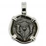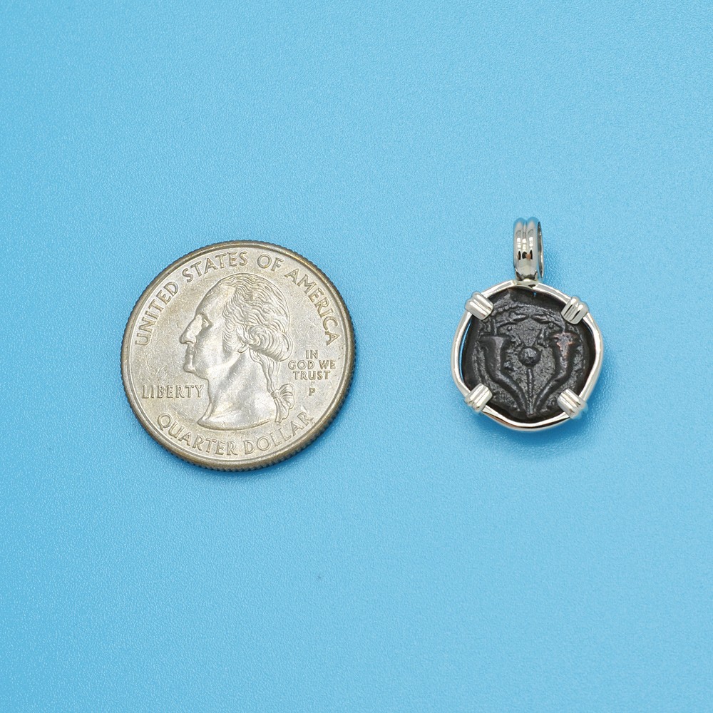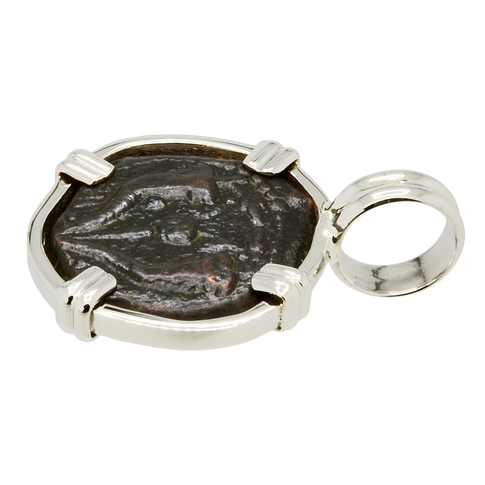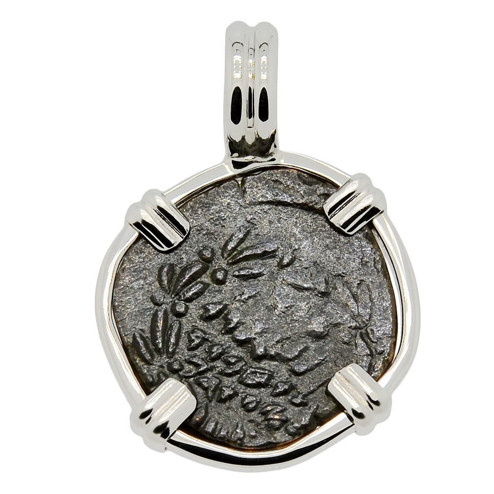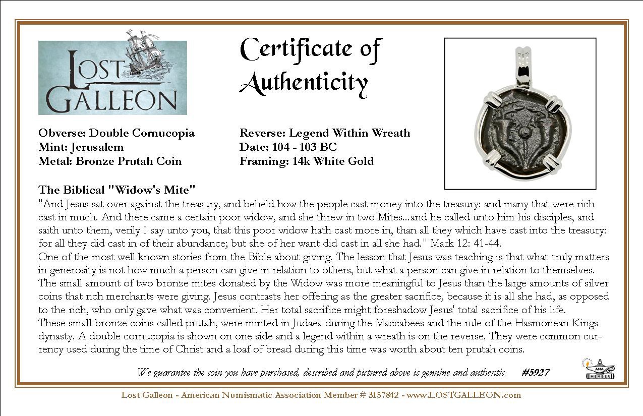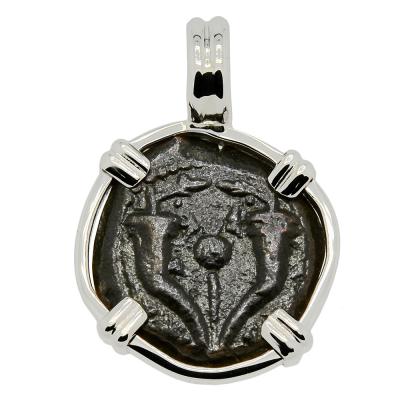 These small bronze coins called prutah, were minted in Judaea during the Maccabees and the rule of the Hasmonean Kings dynasty. A double cornucopia is shown on one side and a legend within a wreath is on the reverse. They were common currency used during the time of Christ and a loaf of bread during this time was worth about ten prutah coins.