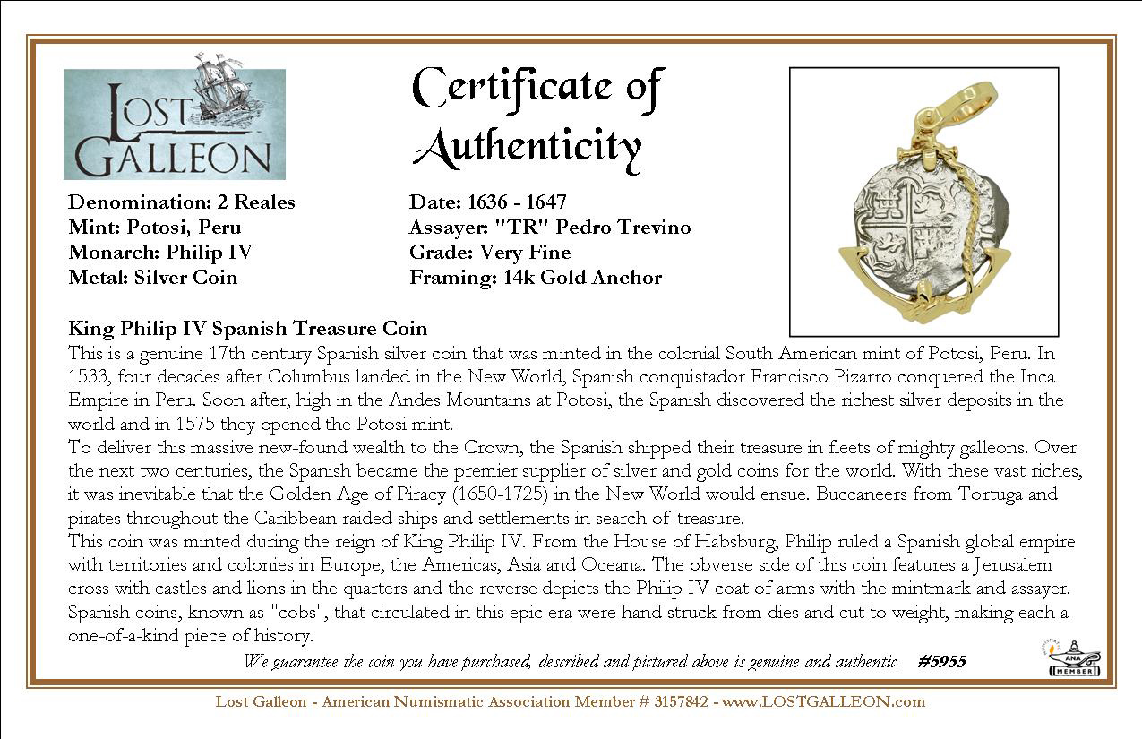 This is a genuine 17th century Spanish silver coin that was minted in the colonial South American mint of Potosi, Peru. In 1533, four decades after Columbus landed in the New World, Spanish conquistador Francisco Pizarro conquered the Inca Empire in Peru. Soon after, high in the Andes Mountains at Potosi, the Spanish discovered the richest silver deposits in the world and in 1575 they opened the Potosi mint.