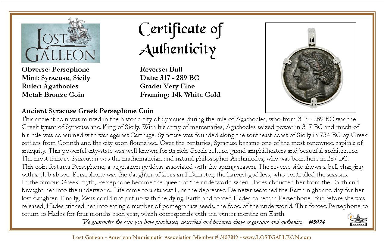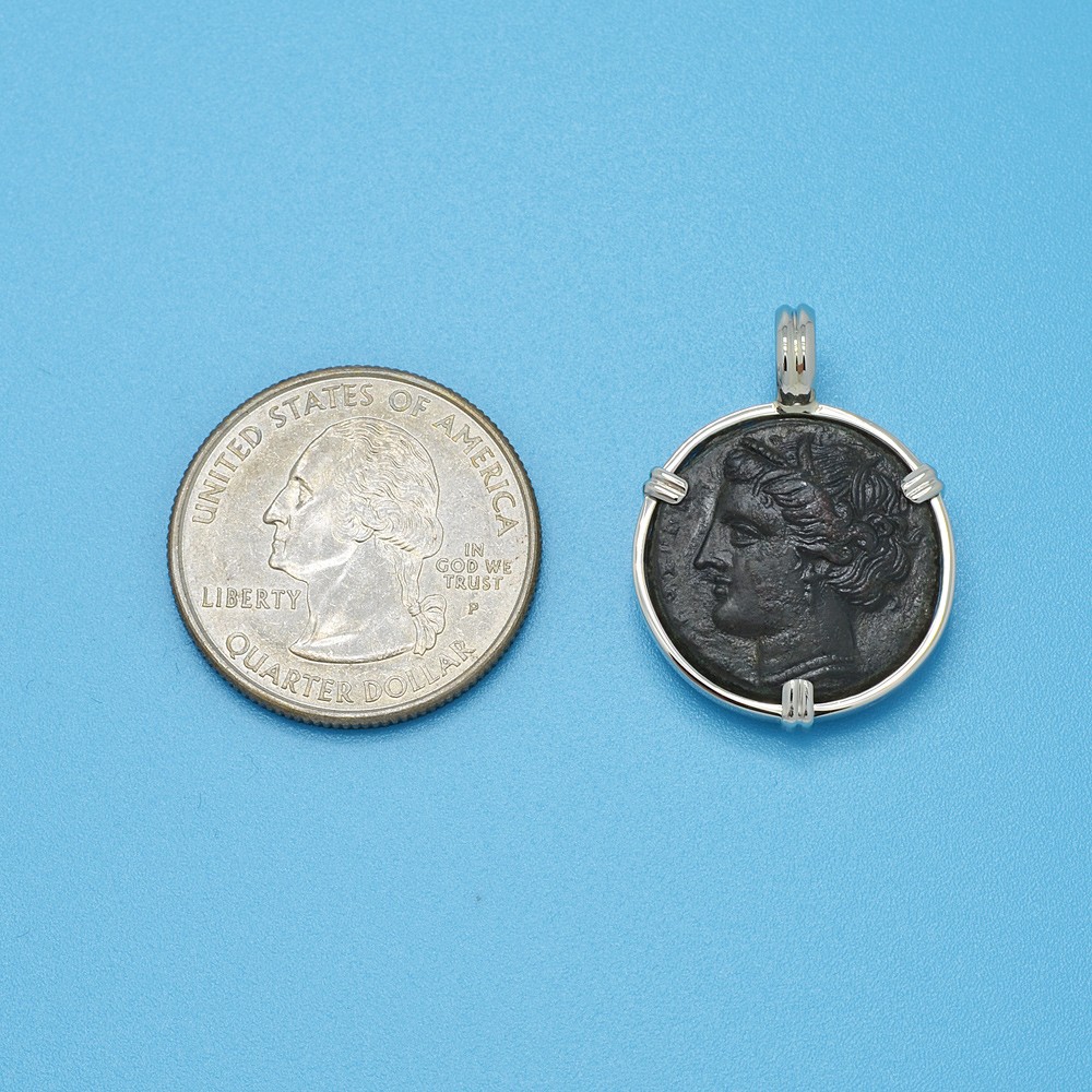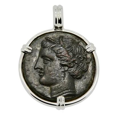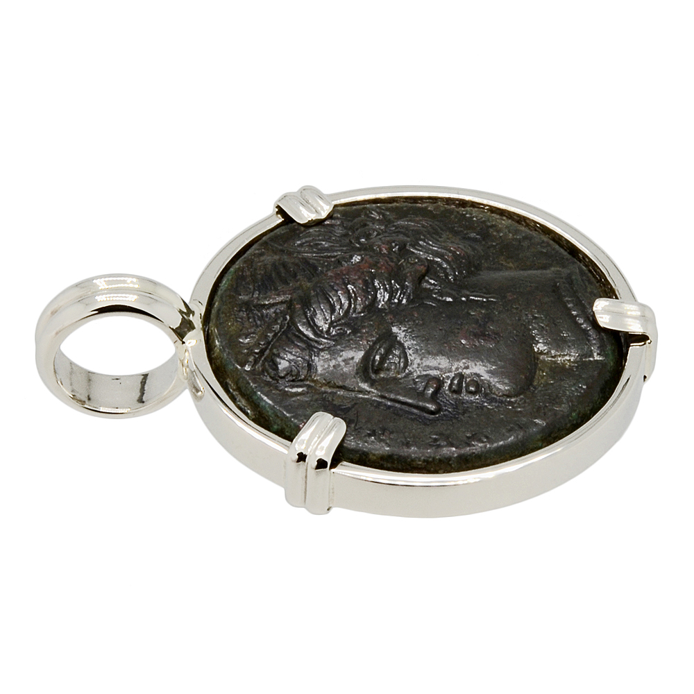 This ancient coin was minted in the historic city of Syracuse during the rule of Agathocles, who from 317 - 289 BC was the Greek tyrant of Syracuse and King of Sicily. With his army of mercenaries, Agathocles seized power in 317 BC and much of his rule was consumed with war against Carthage. Syracuse was founded along the southeast coast of Sicily in 734 BC by Greek settlers from Corinth and the city soon flourished. Over the centuries, Syracuse became one of the most renowned capitals of antiquity. This powerful city-state was well known for its rich Greek culture, grand amphitheaters and beautiful architecture. The most famous Syracusan was the mathematician and natural philosopher Archimedes, who was born here in 287 BC.