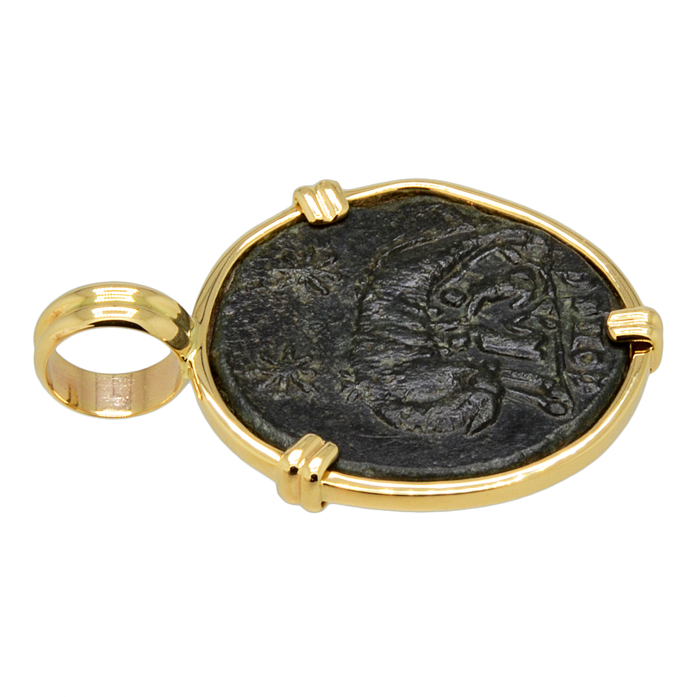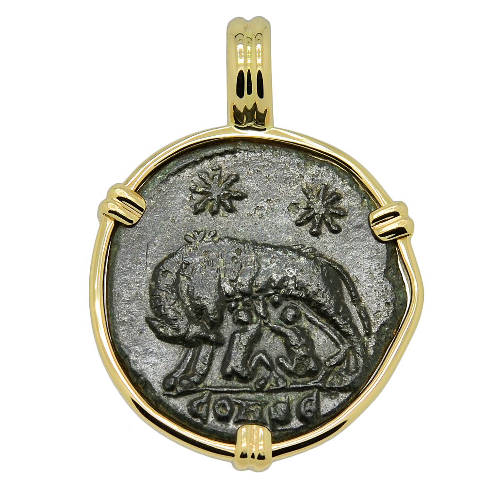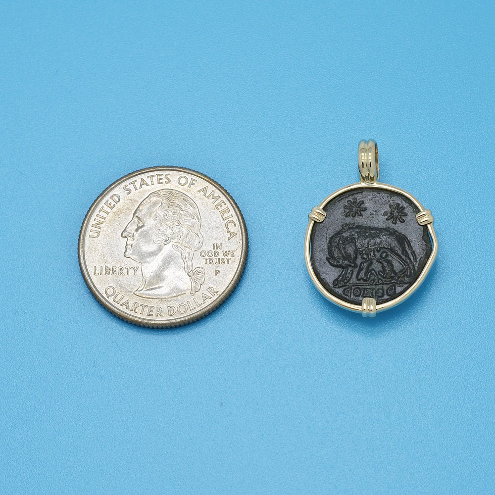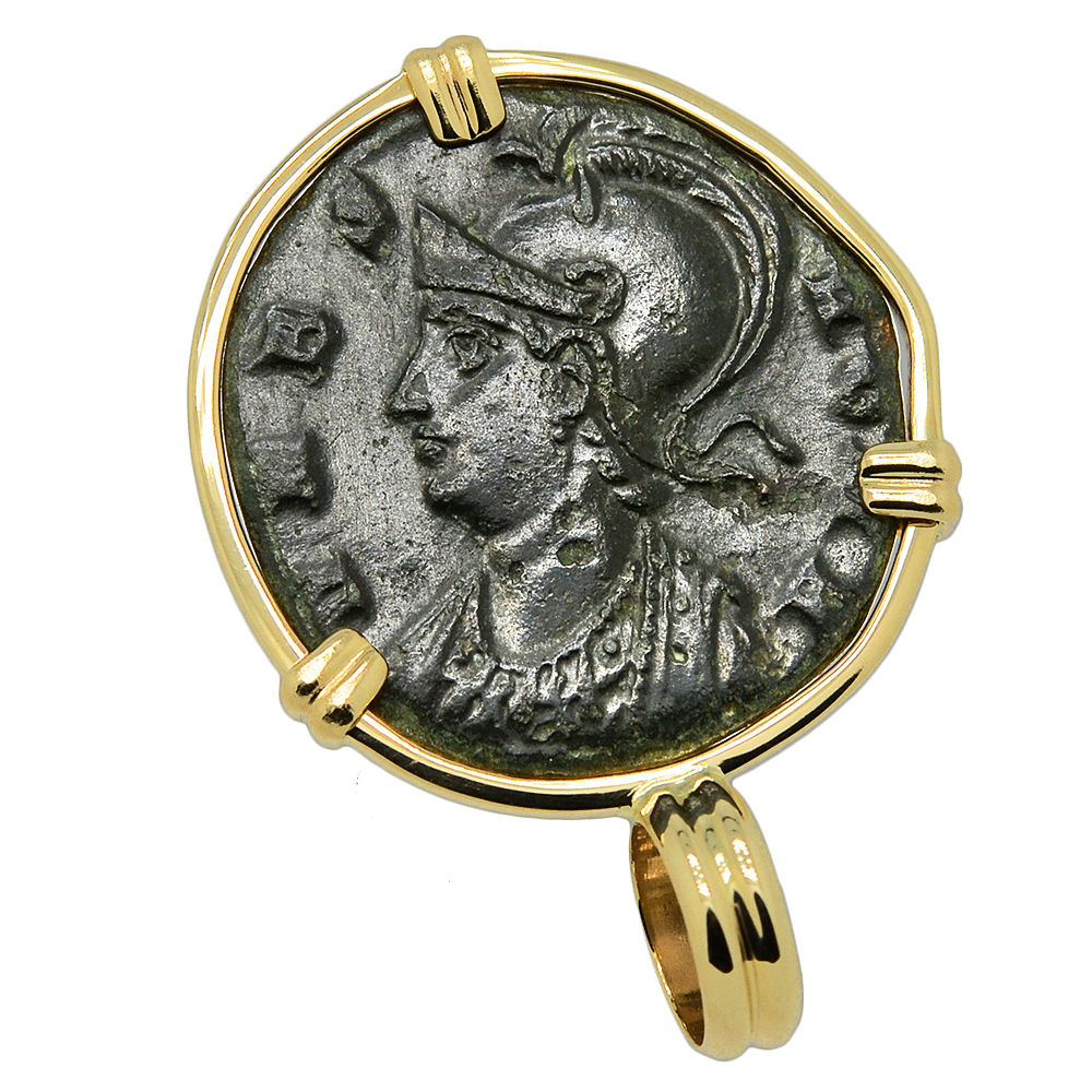 • Bronze Nummus Coin in 14k Gold Pendant, Weight 3.7g