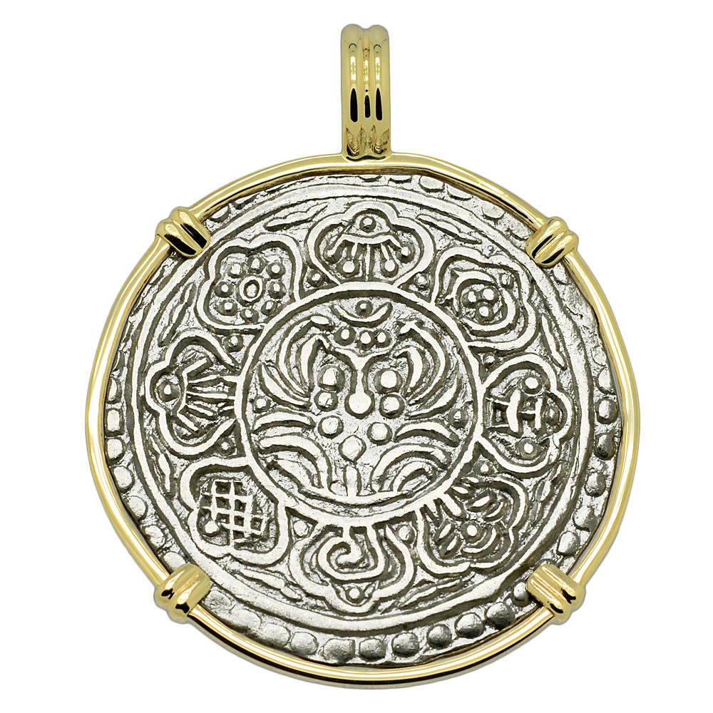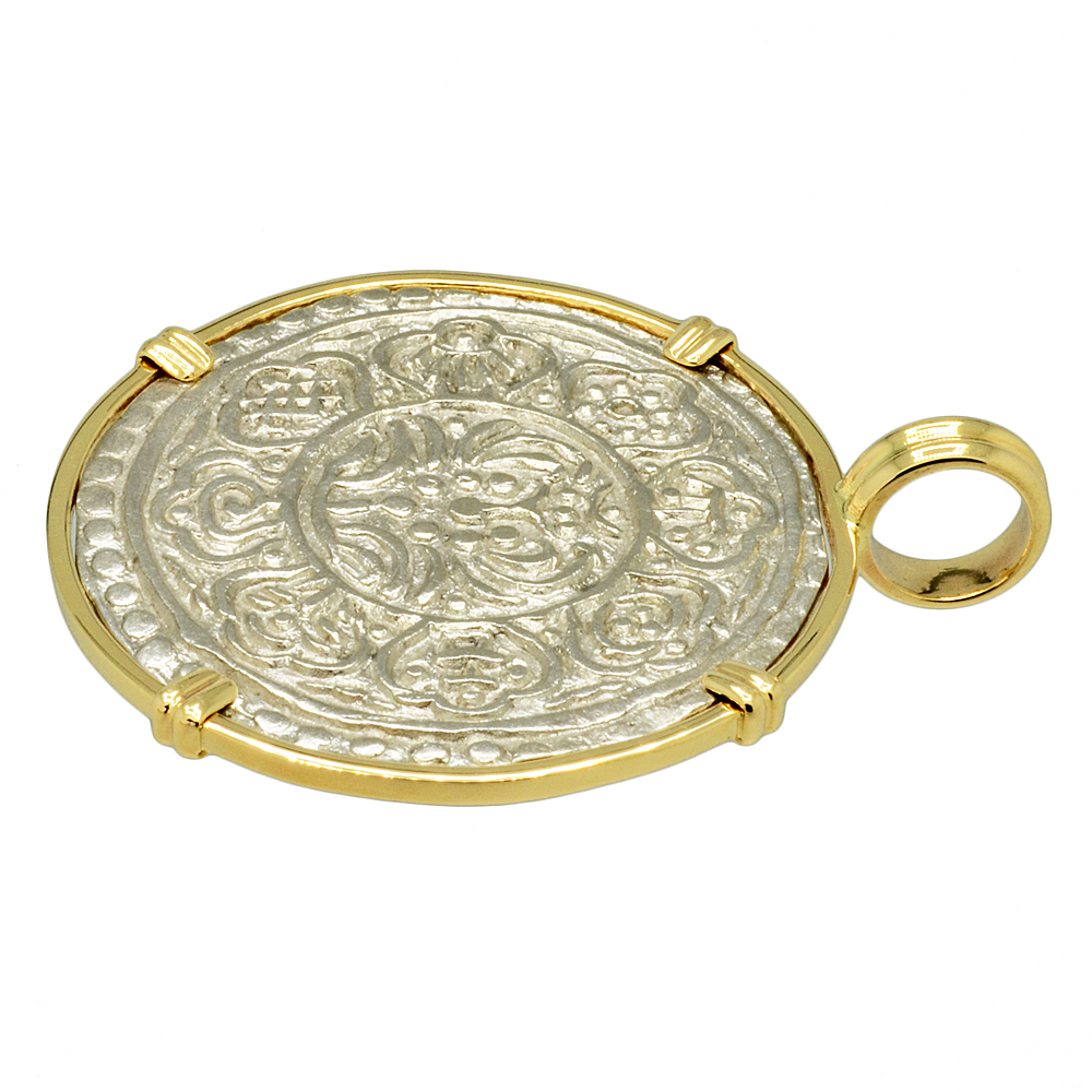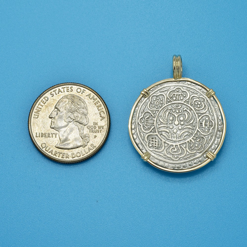 • Silver Coin in 14k Gold Pendant, Weight 6.5g