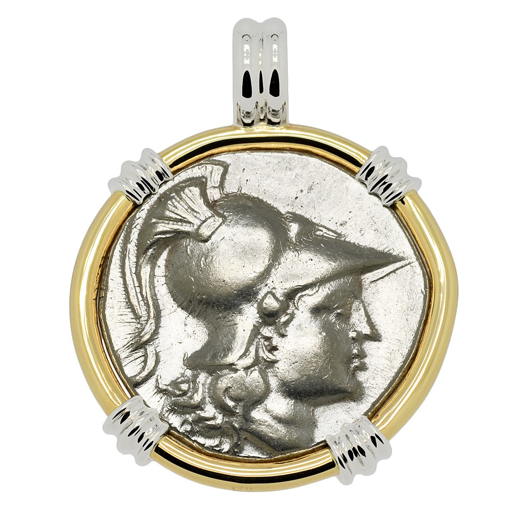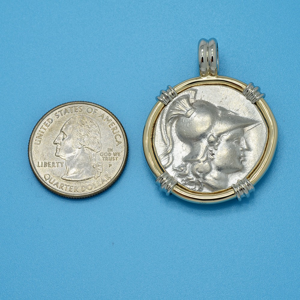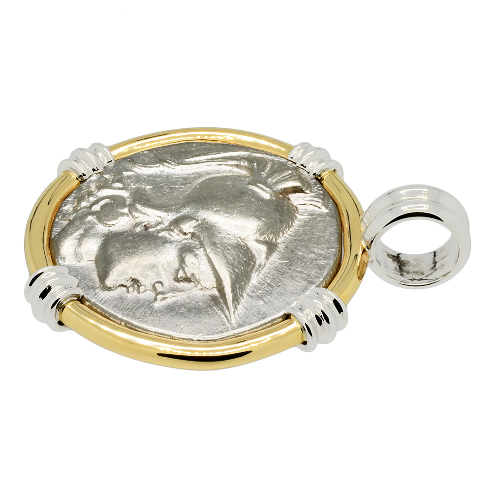 • Silver Tetradrachm Coin in 14k White and Yellow Gold Pendant, Weight 25.2g