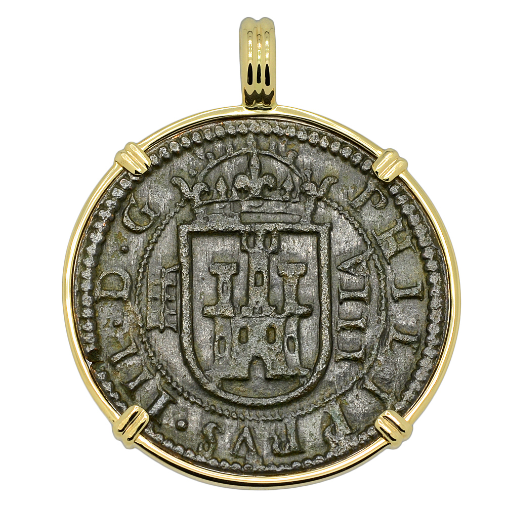 With the discovery of untold riches that were mined in the Americas, the Spanish and their mighty galleon fleets were the premier supplier of gold and silver coins for the world. This vastly increased the shipping trade and made many merchants wealthy, both in Spain and in the colonies. However, even the smallest silver one real coins were too large for most common transactions such as buying food or clothing. So the Spanish minted the copper maravedi in denominations of 8, 4, 2, and 1, which were valued at 34 maravedis equal to one silver real. A typical sailor was paid around 1,000 maravedis per month. Spanish coins that circulated in this adventurous age are all unique and each is a one-of-a-kind piece of history.