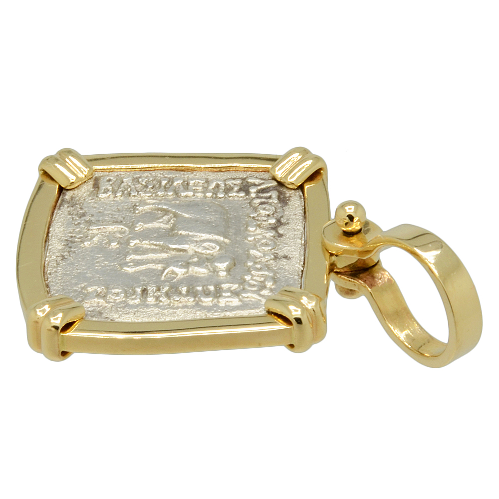 This 2nd century BC silver coin was minted during the rule of Indo-Greek King Apollodotus I, whose name means “given by Apollo.” The Greek Kingdom of Bactria was founded during the mid-3rd century BC in the region of modern day Afghanistan, from the remnants of the conquests of Alexander the Great. As a general of King Demetrius I of Bactria, Apollodotus invaded Northwestern India in 180 BC. With this conquest, Apollodotus became the first Indo-Greek King (180 - 160 BC) who ruled in India only and therefore the founder of the proper Indo-Greek Kingdom. During the following two centuries of their rule, the Indo-Greek Kings combined Greek and Indian culture, art, languages and architecture. They also blended ancient Greek, Hindu and Buddhist religious practices, as seen in the archaeological remains of their cities.