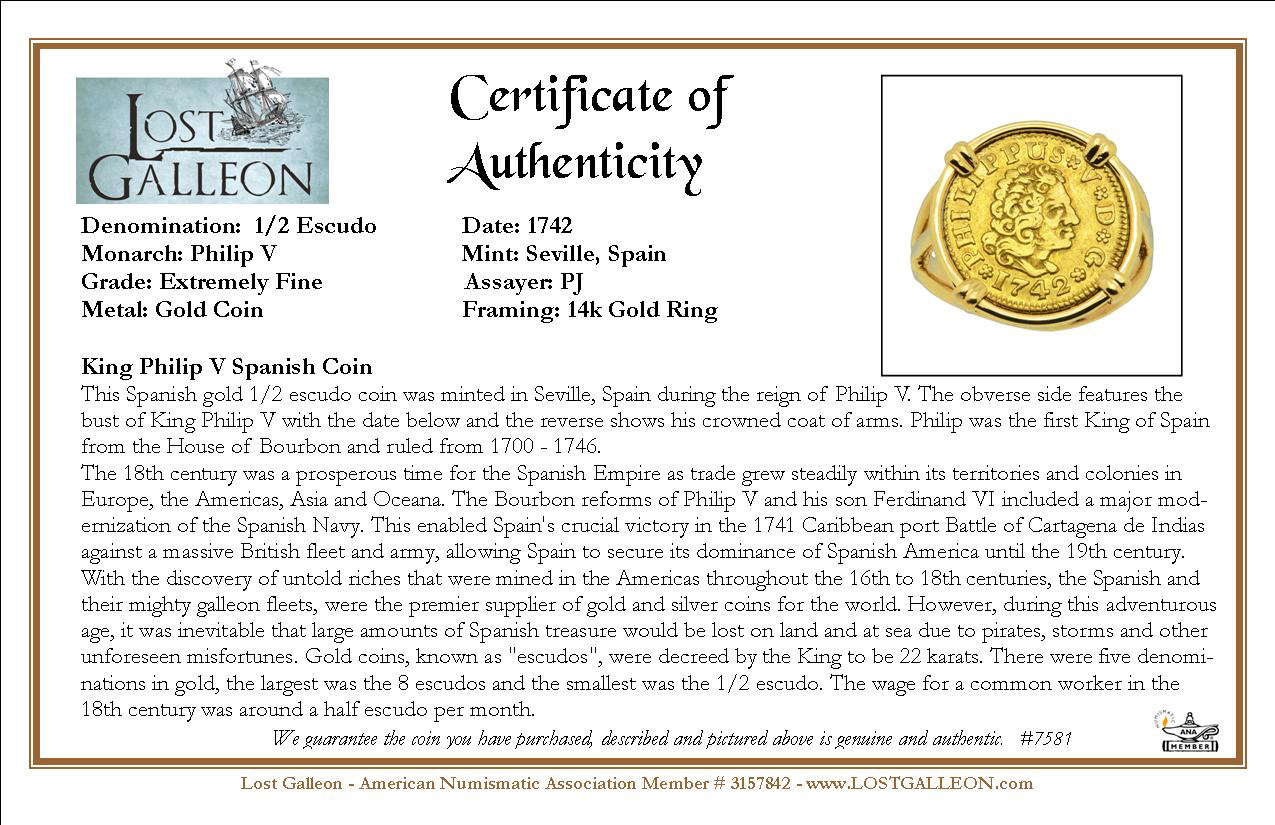 King Philip V Half Escudo Ladies Ring