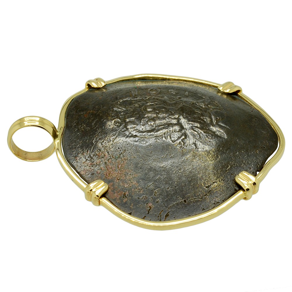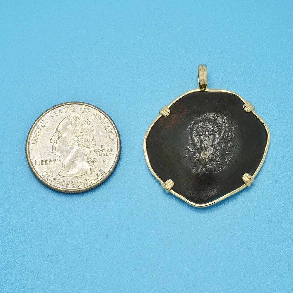 • Billon (Copper & Silver) Aspron Trachy Coin in 14k Gold Pendant, Weight 5.1g