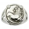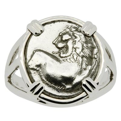 The silver lion hemidrachm coins of Cherronesos were an important currency during the Greek Classical period, used in trade with cities along the coast of the Black Sea. The obverse side of this coin depicts the forepart of a lion, bounding to the right and reverting his head to look back. The lion was not indigenous to Greek lands, however the lion was still a popular beast renowned for its power and hunting prowess. Lions have been depicted in Greek art for centuries before coins were minted. The reverse of this coin is unique as of the four squares, two are raised and two are sunken. These incuse squares were used on the early Greek coinage to hold the coin in place for the hammer strike on the obverse.