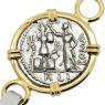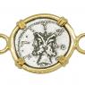 • Silver Denarius in 14k Gold Bezel on 6mm Wide Sterling Silver Bracelet, Weight: 22g