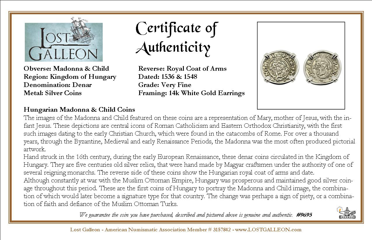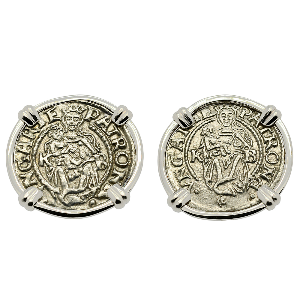 Hand struck in the 16th century, during the early European Renaissance, these denar coins circulated in the Kingdom of Hungary. They are five centuries old silver relics, that were hand made by Magyar craftsmen under the authority of one of several reigning monarchs. The reverse side of these coins show the Hungarian royal coat of arms and date.