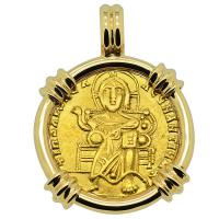• Byzantine 1118-1143, Jesus Christ with John II and the Virgin Mary, hyperpyron in 14k gold pendant.