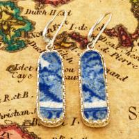 • British Pottery Artifact in silver earrings, (1800 - 1820) Eastern Caribbean Sea Shipwreck.
