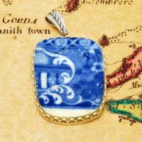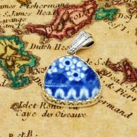 • British Pottery Artifact in silver pendant, (1800 - 1820) Eastern Caribbean Sea Shipwreck.