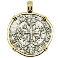 • Cyprus 1285-1324 Henry II, last ruling King of Jerusalem, gros grand Crusader coin in 14k white gold pendant.