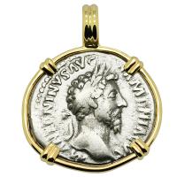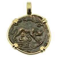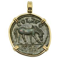 • Roman Empire AD 315–317, Constantine and Sol follis in 14k gold pendant.