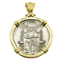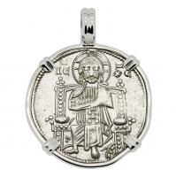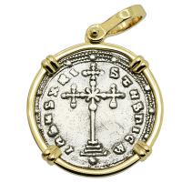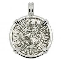 • Antioch 1163-1188, Crusader Cross denier in 14k white gold pendant.