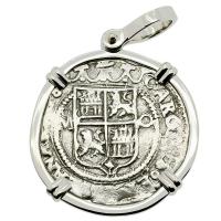 • Colonial Spanish Mexico one real 1571-1589 in 14k white gold pendant.