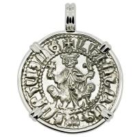 • Cyprus 1324-1340, gros petit Crusader coin in 14k white gold pendant.
