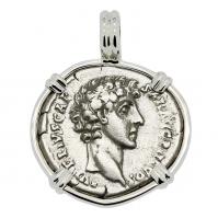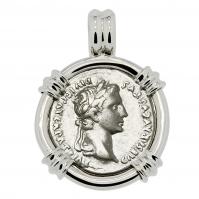 • Roman Republic 49 BC, "Goddess of health" Salus denarius in 14k white gold pendant.