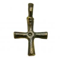 • Ancona 1280-1320, Cross Pattee and Saint Judas Cyriacus grosso agontano in 14k gold pendant.