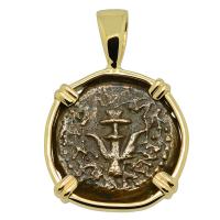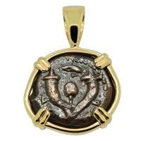 • Holy Land 104 - 103 BC, Biblical Widow’s Mite in 14k gold pendant.