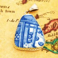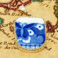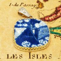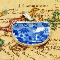 • British Pottery Artifact in silver pendant, (1800 - 1820) Eastern Caribbean Sea Shipwreck.