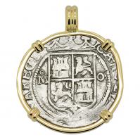 • Colonial Spanish Mexico, King Philip III four reales 1598-1618 in 14k white gold pendant.