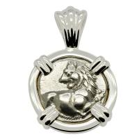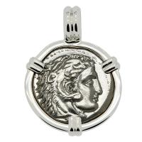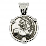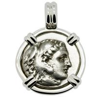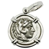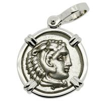 • Greek 323-319 BC, Alexander the Great drachm in 14k white gold pendant.