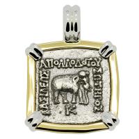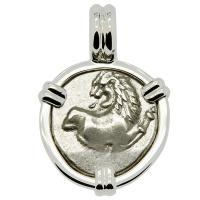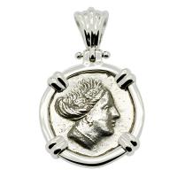 • Greek 35-30 BC, Apollo and kithara hemidrachm in 14k white gold pendant.