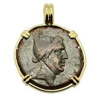 • Greek 100 - 70 BC, Hero Perseus and Pegasus bronze coin in 14k gold pendant.