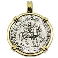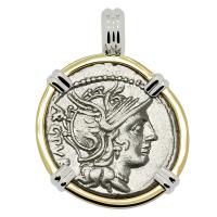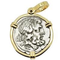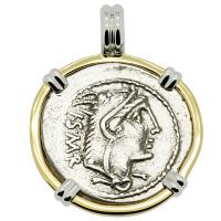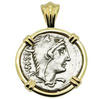 • Roman Republic 105 BC, Queen Goddess Juno denarius in 14k gold pendant.