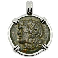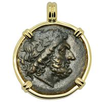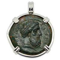 • Greek Syracuse 357-354 BC, Zeus and thunderbolt bronze hemidrachm coin in 14k white gold pendant.