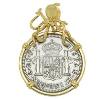 • Spanish 2 reales dated 1783 in 14k gold Octopus pendant, The 1784 Shipwreck that Changed America.