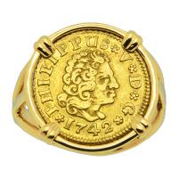 • Spanish 1/2 real dated 1783 in 14k gold ladies ring, The shipwreck that changed America.