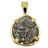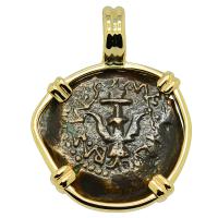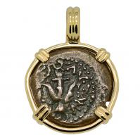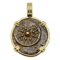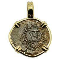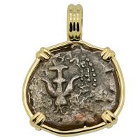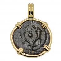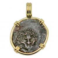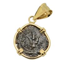 • Holy Land 104 - 103 BC, Biblical Widow’s Mite in 14k gold pendant.
