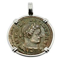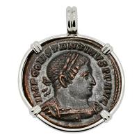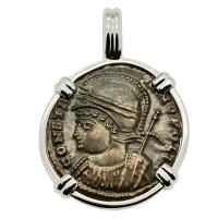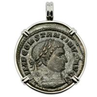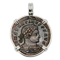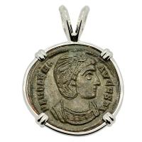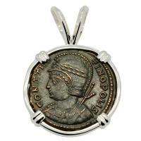 • Roman Antioch AD 337-340, Constantine the Great follis in 14k white gold pendant.