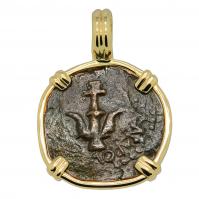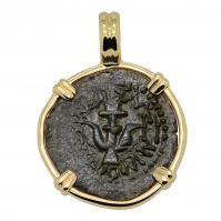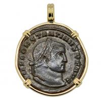 • Roman Alexandria AD 337-340, Constantine the Great follis in 14k gold pendant.