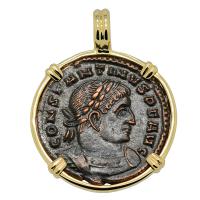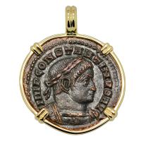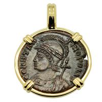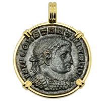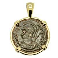 • Roman Antioch AD 337-340, Constantine the Great follis in 14k gold pendant.
