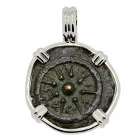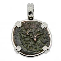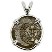 • Holy Land 103-76 BC, Biblical Widow’s Mite in 14k white gold pendant.
