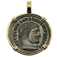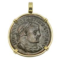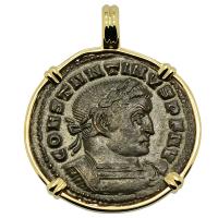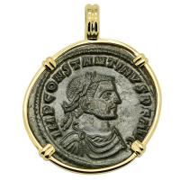 • Roman Empire AD 312–313, Constantine and Jupiter follis in 14k gold pendant.