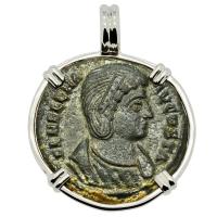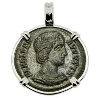 • Roman Empire AD 328–329, Saint Helena follis in 14k white gold pendant.