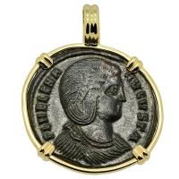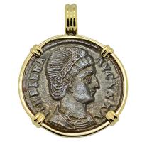 • Roman Empire AD 324–329, Saint Helena follis in 14k gold pendant.