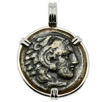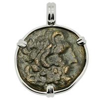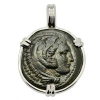 • Greek 324-323 BC, Alexander the Great bronze coin in 14k white gold pendant.