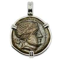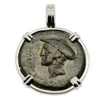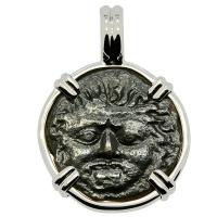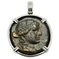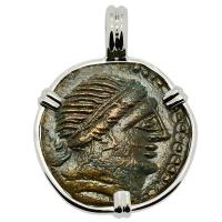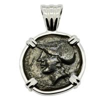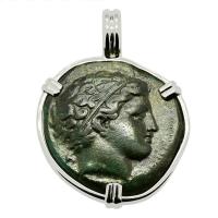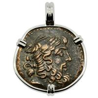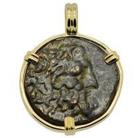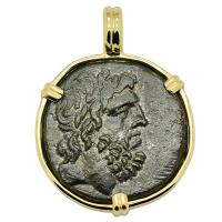 • Greek 100-25 BC, Zeus bronze coin in 14k white gold pendant.